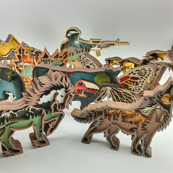 Fábrica personalizada de alta calidad multicapa 3D tallado arte de la pared decoración madera Animal decoración artesanías de madera